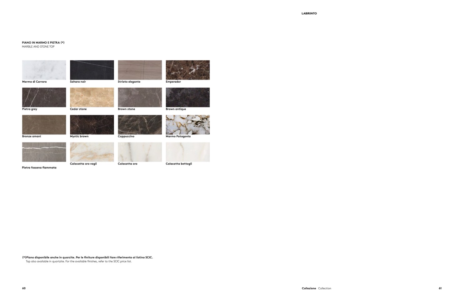 (*)Piano disponibile anche in quarzite. Per le finiture disponibili fare riferimento al listino SCIC.