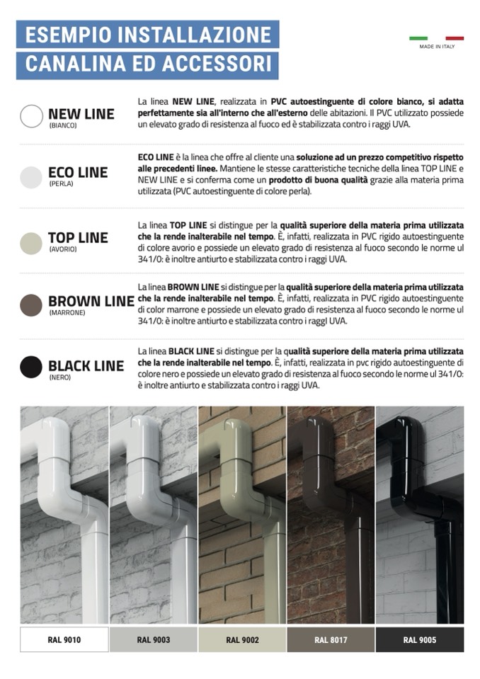 La linea NEW LINE, realizzata in PVC autoestinguente di colore bianco, si adatta
