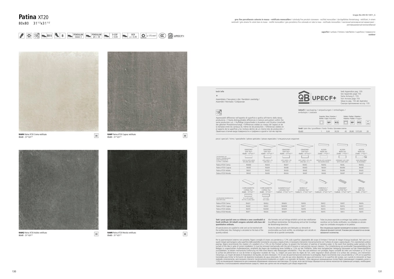 mécanique, au moyen de balais et d’aspirateurs de liquides, est alors nécessaire. / En el caso de pavimentaciones exteriores no protegidas, Ragno recomienda crear una pendiente ≥ 1,5% en la superficie