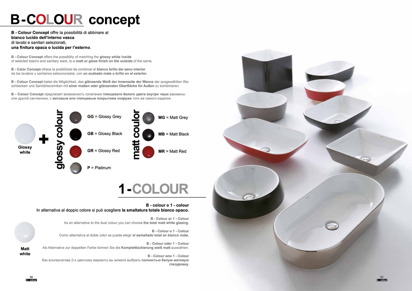 B – Colour Concept предлагает возможность сочетания глянцевого белого цвета внутри чаши раковины