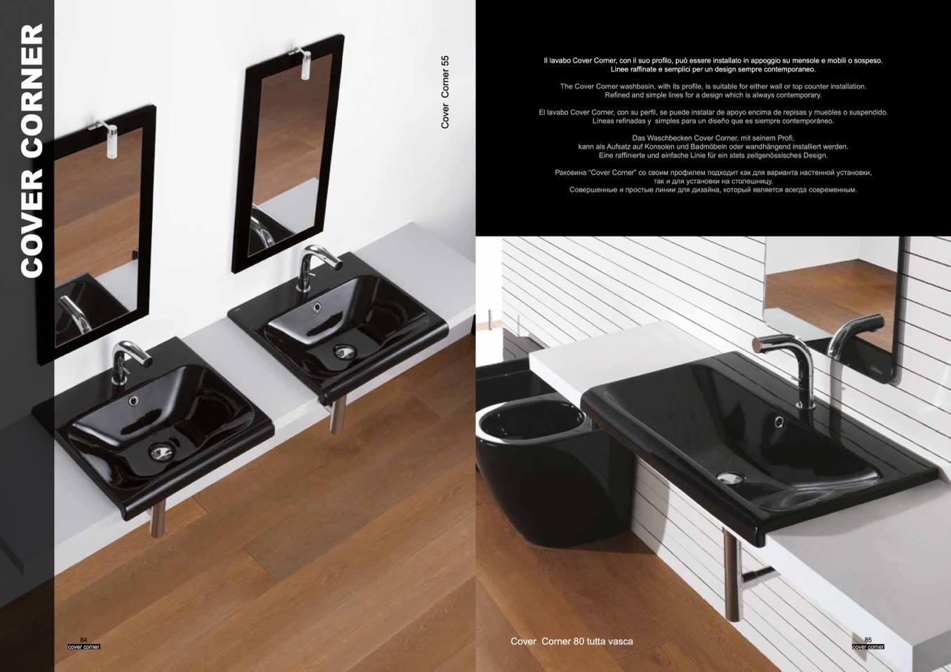 Раковина “Cover Corner” со своим профилем подходит как для варианта настенной установки,