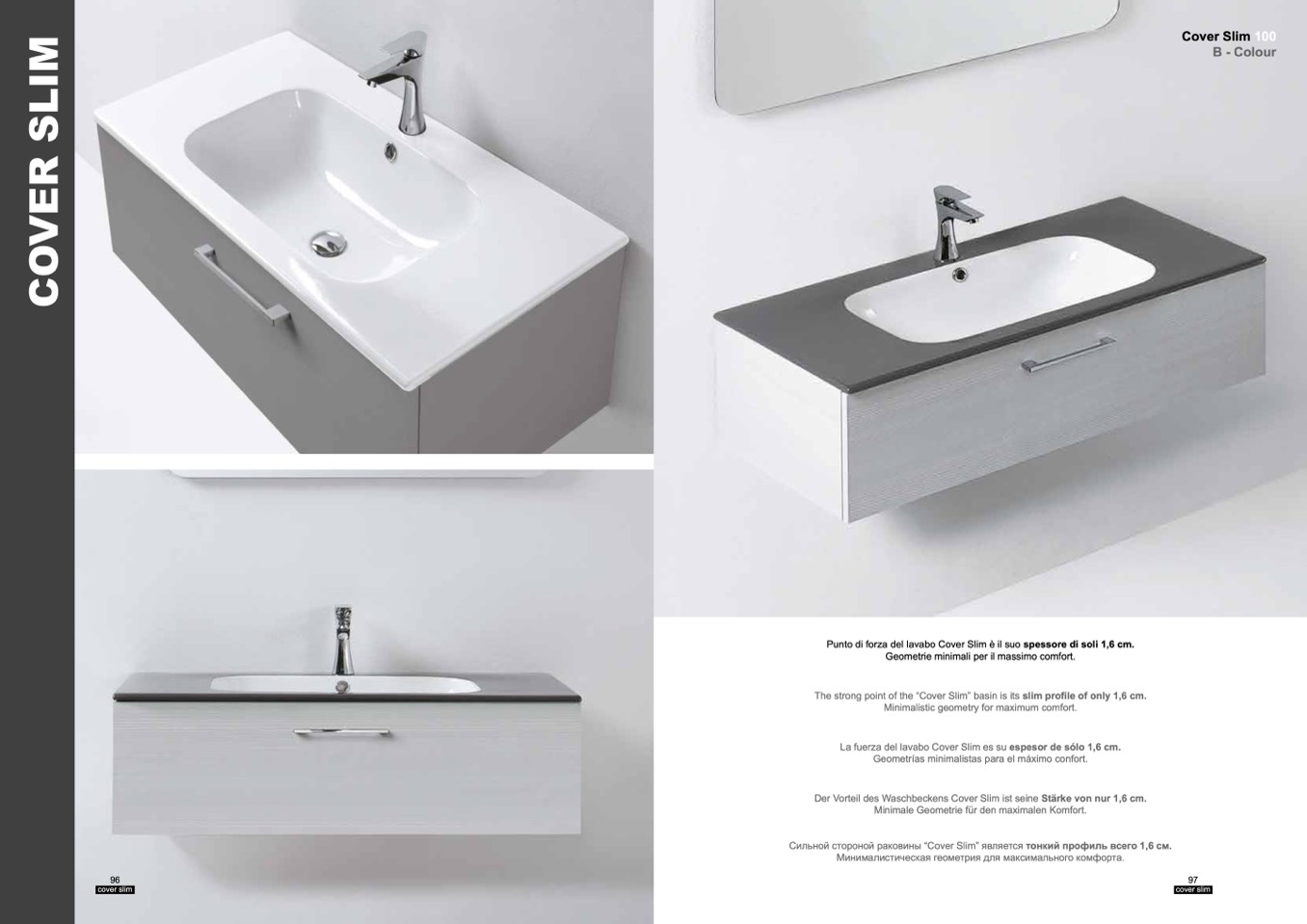 Punto di forza del lavabo Cover Slim è il suo spessore di soli 1,6 cm.