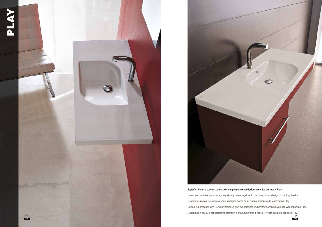 Superfici lineari e curve si uniscono sinergicamente nel design armonico dei lavabi Play.