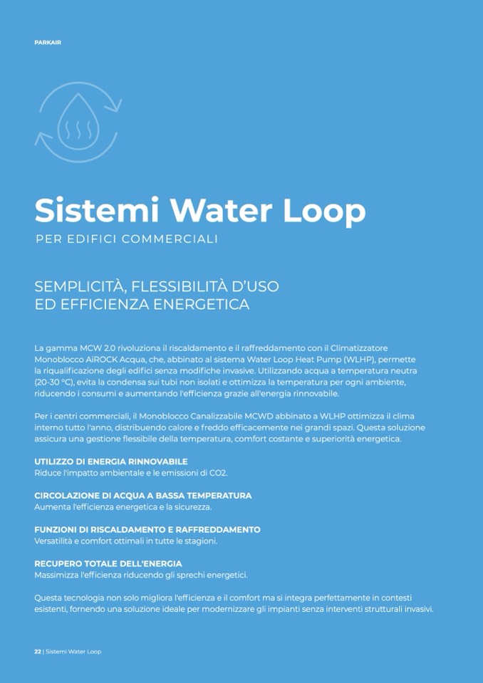 Monoblocco AiROCK Acqua, che, abbinato al sistema Water Loop Heat Pump (WLHP), permette