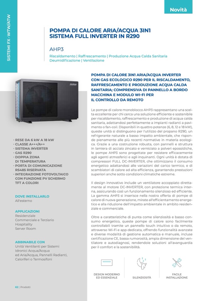 Le pompe di calore monoblocco AHP3 rappresentano una scel-