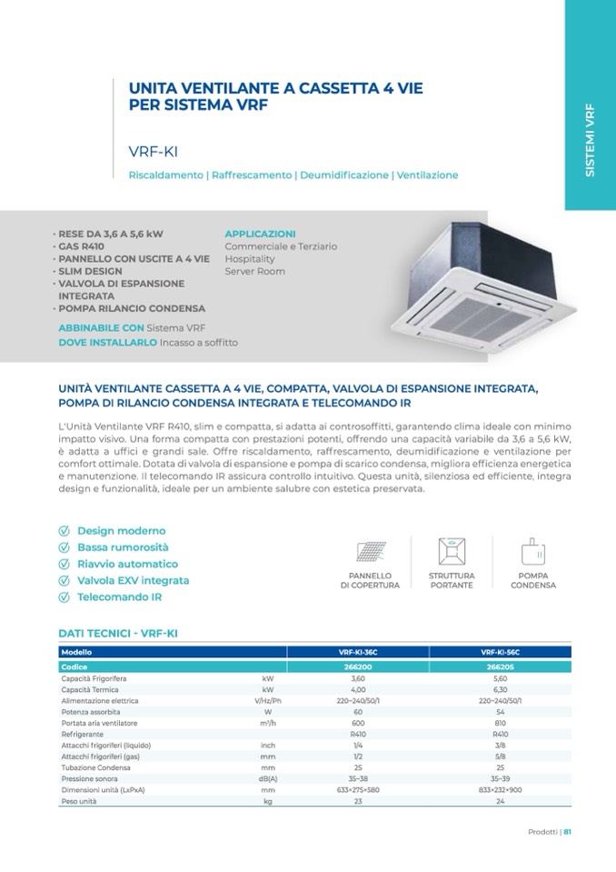 L'Unità Ventilante VRF R410, slim e compatta, si adatta ai controsoffitti, garantendo clima ideale con minimo