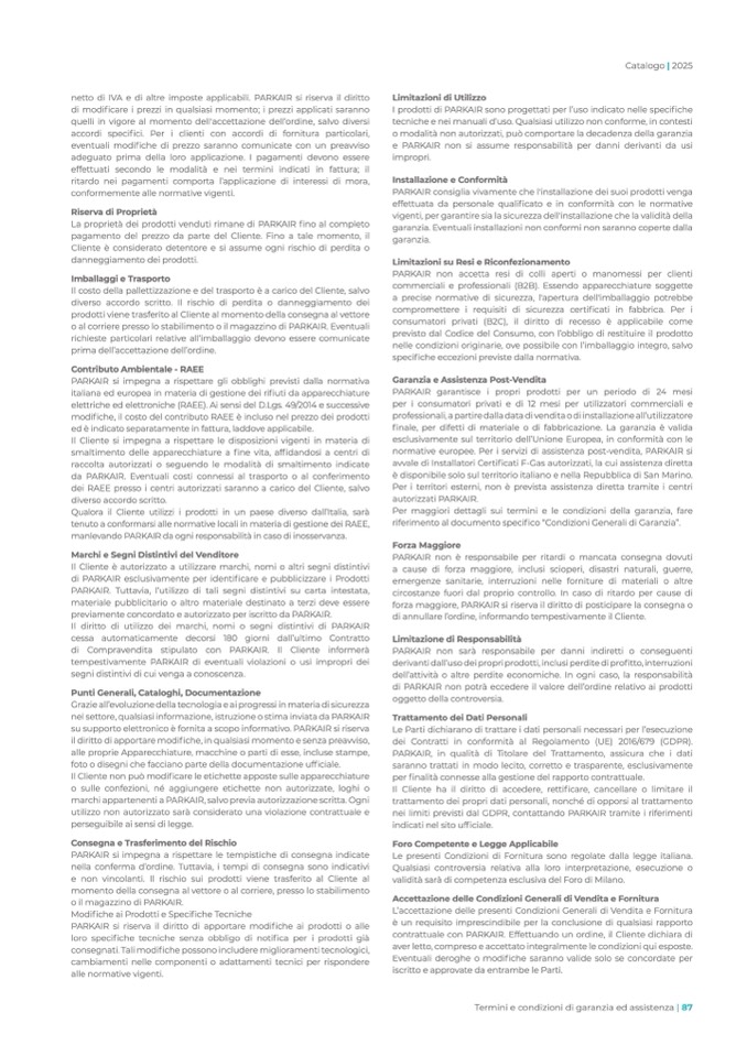 normative europee. Per i servizi di assistenza post-vendita, PARKAIR si
