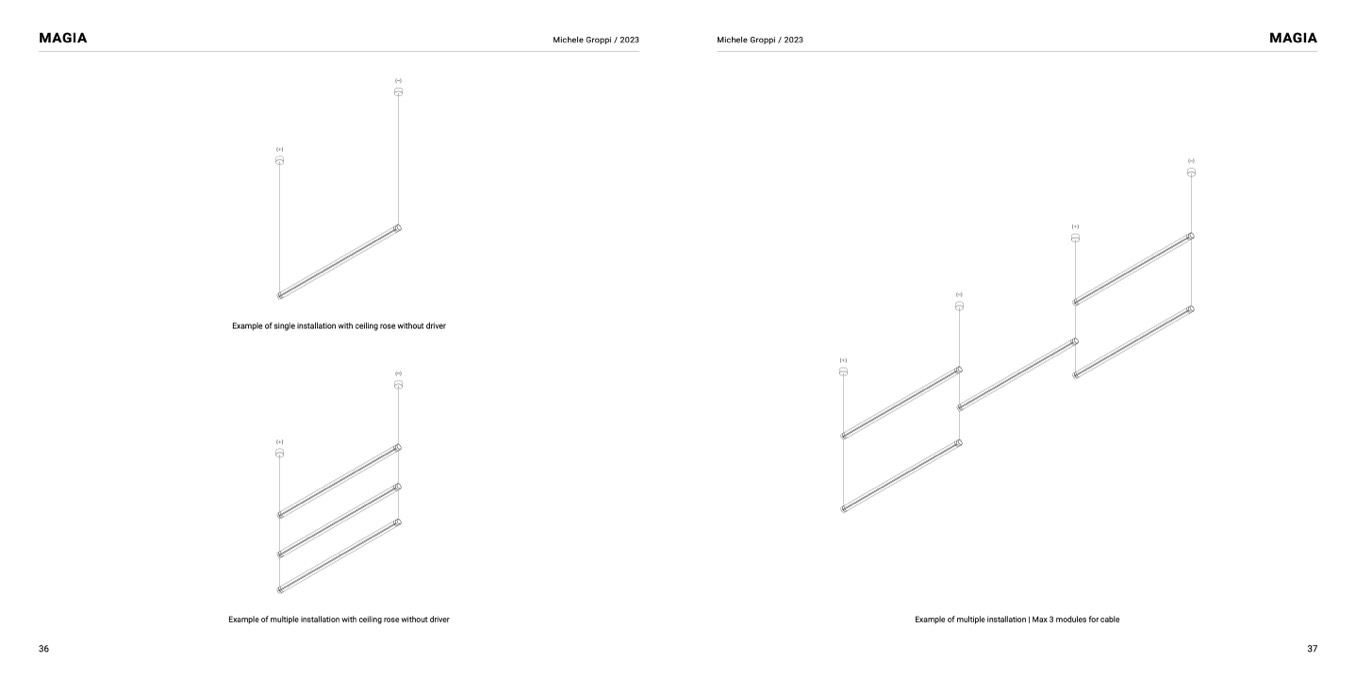 Example of multiple installation with ceiling rose without driver