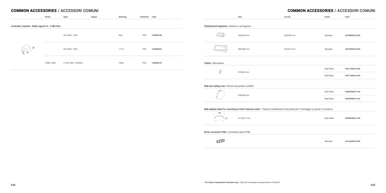* For Class III suspension luminaire only. / Solo per le lampade a sospensione in Classe III