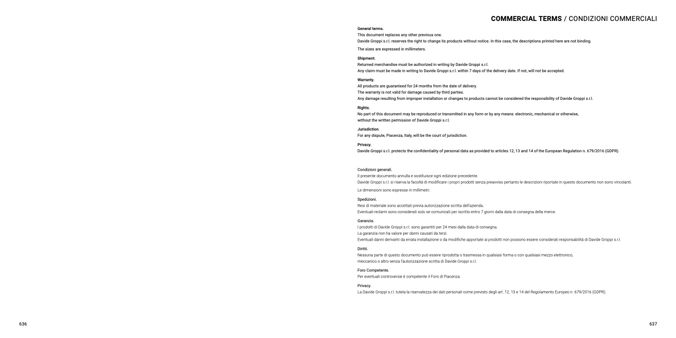 I prodotti di Davide Groppi s.r.l. sono garantiti per 24 mesi dalla data di consegna