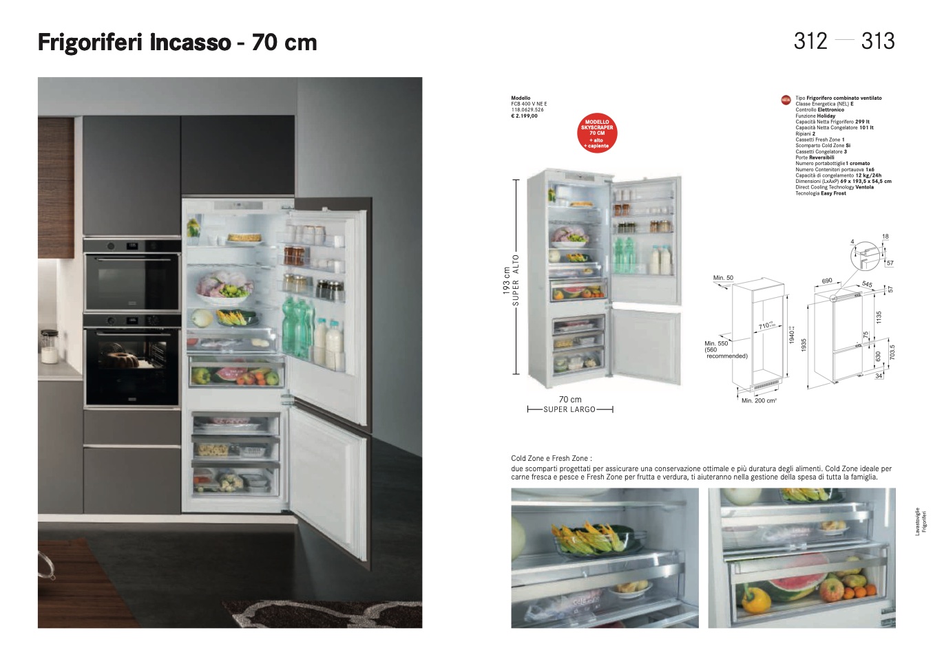 due scomparti progettati per assicurare una conservazione ottimale e più duratura degli alimenti. Cold Zone ideale per