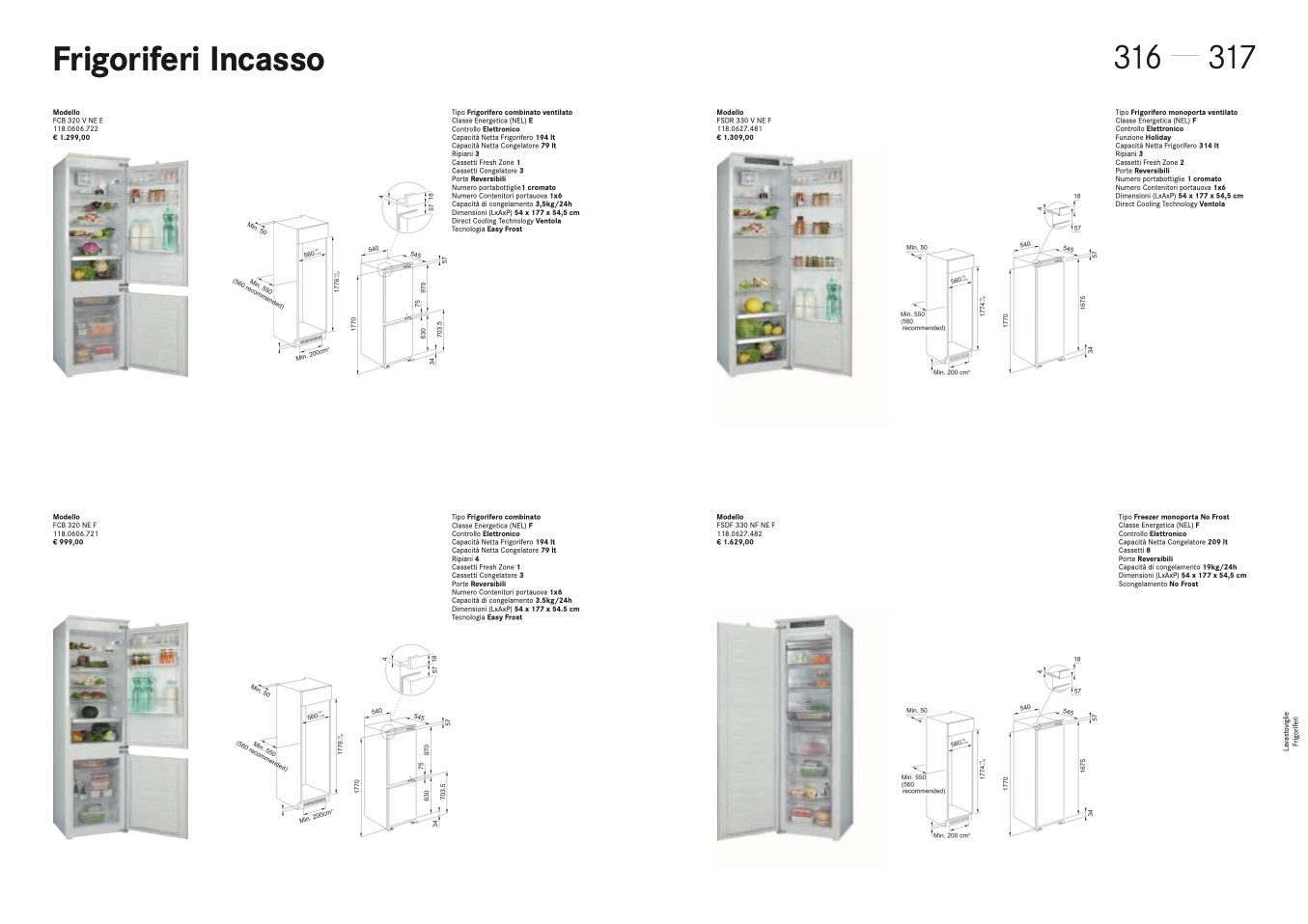 Capacità Netta Frigorifero 314 lt