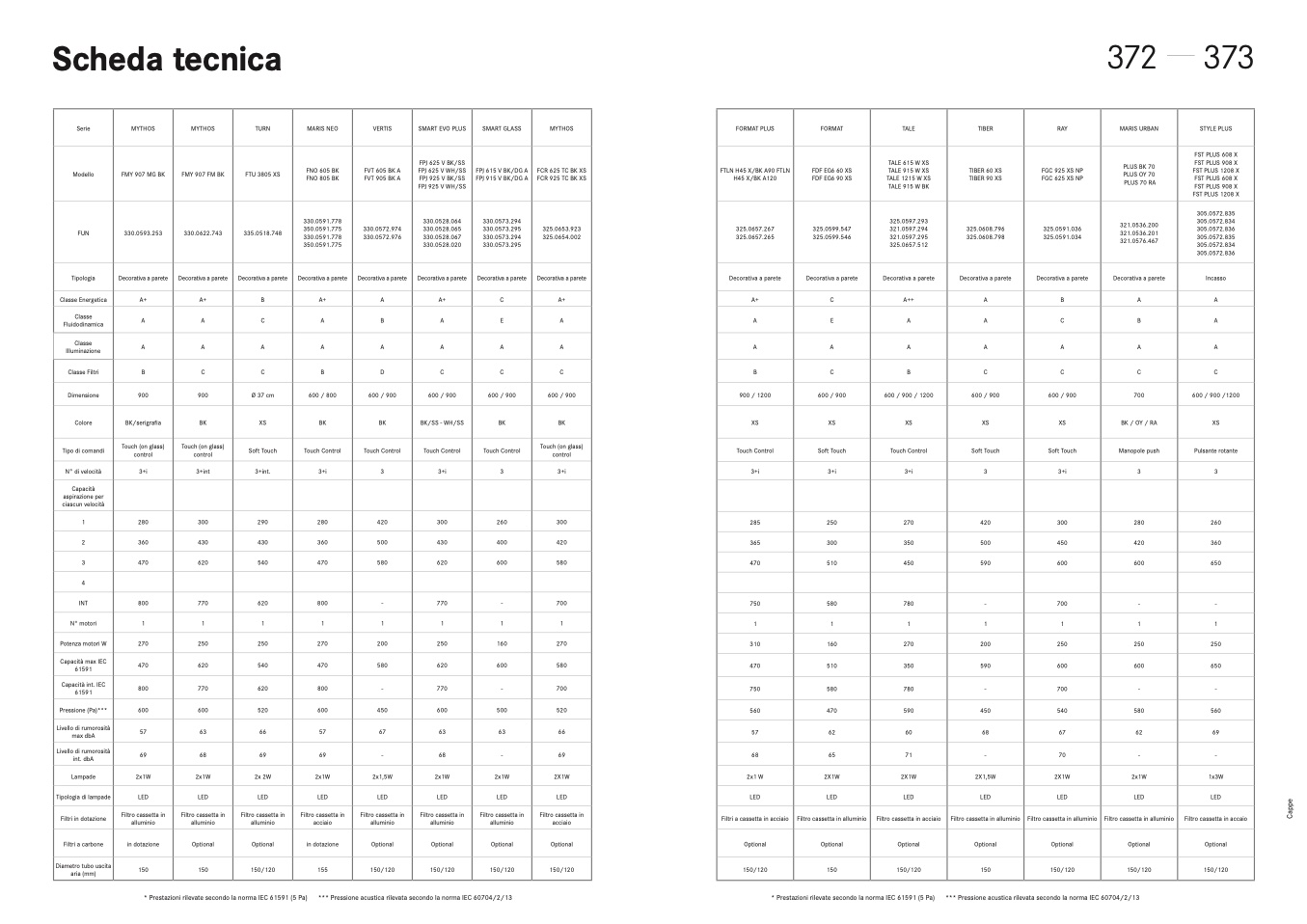 * Prestazioni rilevate secondo la norma IEC 61591 (5 Pa)