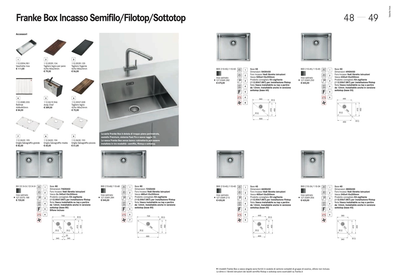 Le dime e i libretti istruzioni dei lavelli semifilo-filotop e sottotop sono scaricabili su franke.it