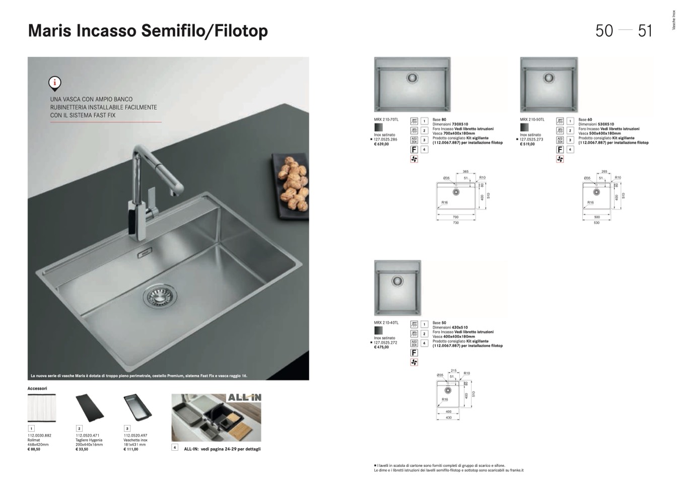 Le dime e i libretti istruzioni dei lavelli semifilo-filotop e sottotop sono scaricabili su franke.it