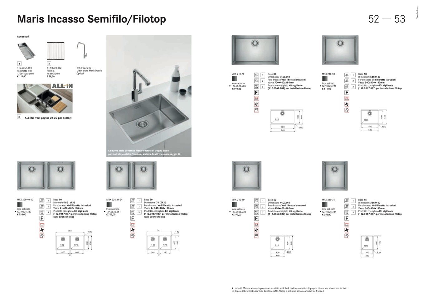 Le dime e i libretti istruzioni dei lavelli semifilo-filotop e sottotop sono scaricabili su franke.it