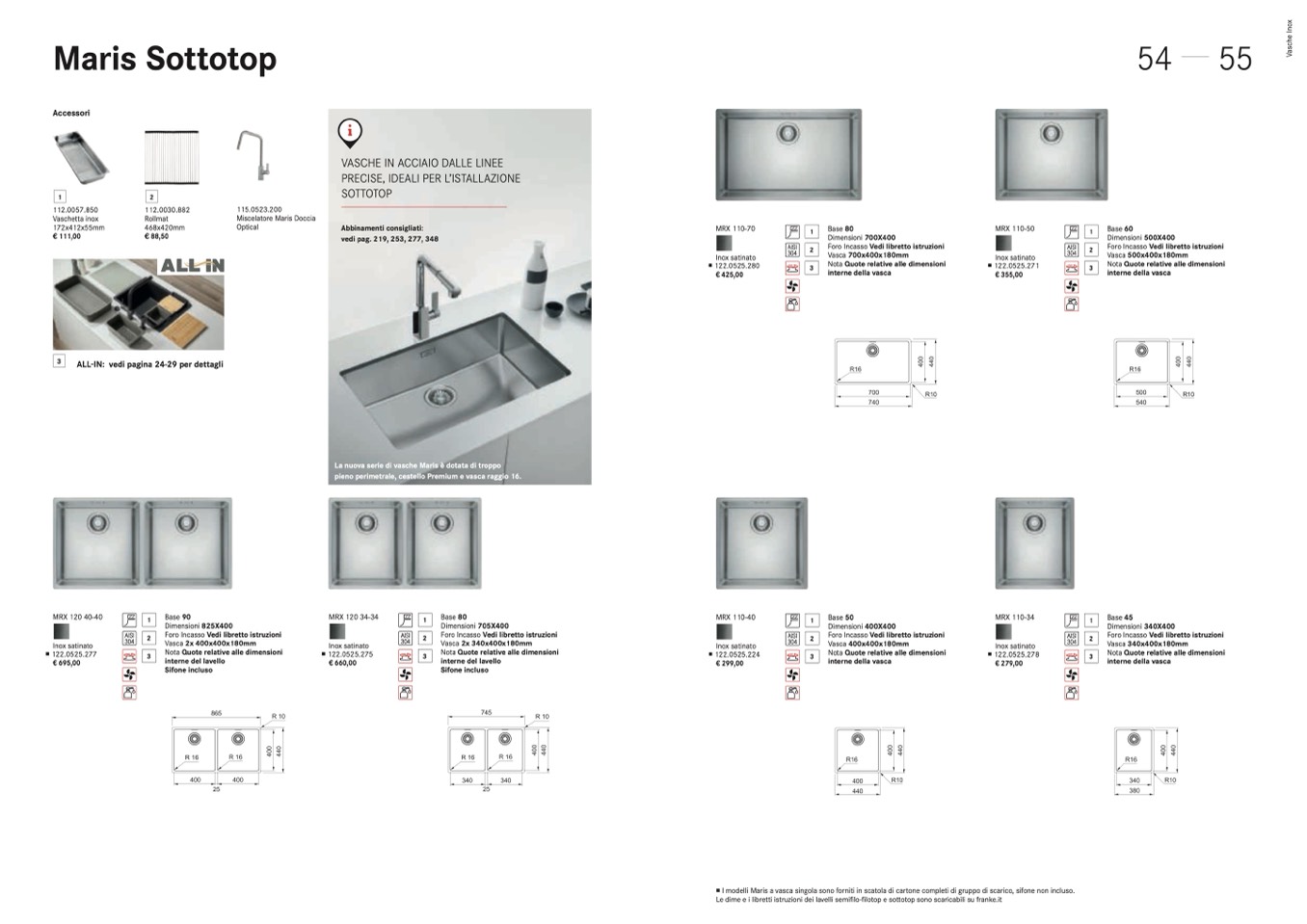 Le dime e i libretti istruzioni dei lavelli semifilo-filotop e sottotop sono scaricabili su franke.it