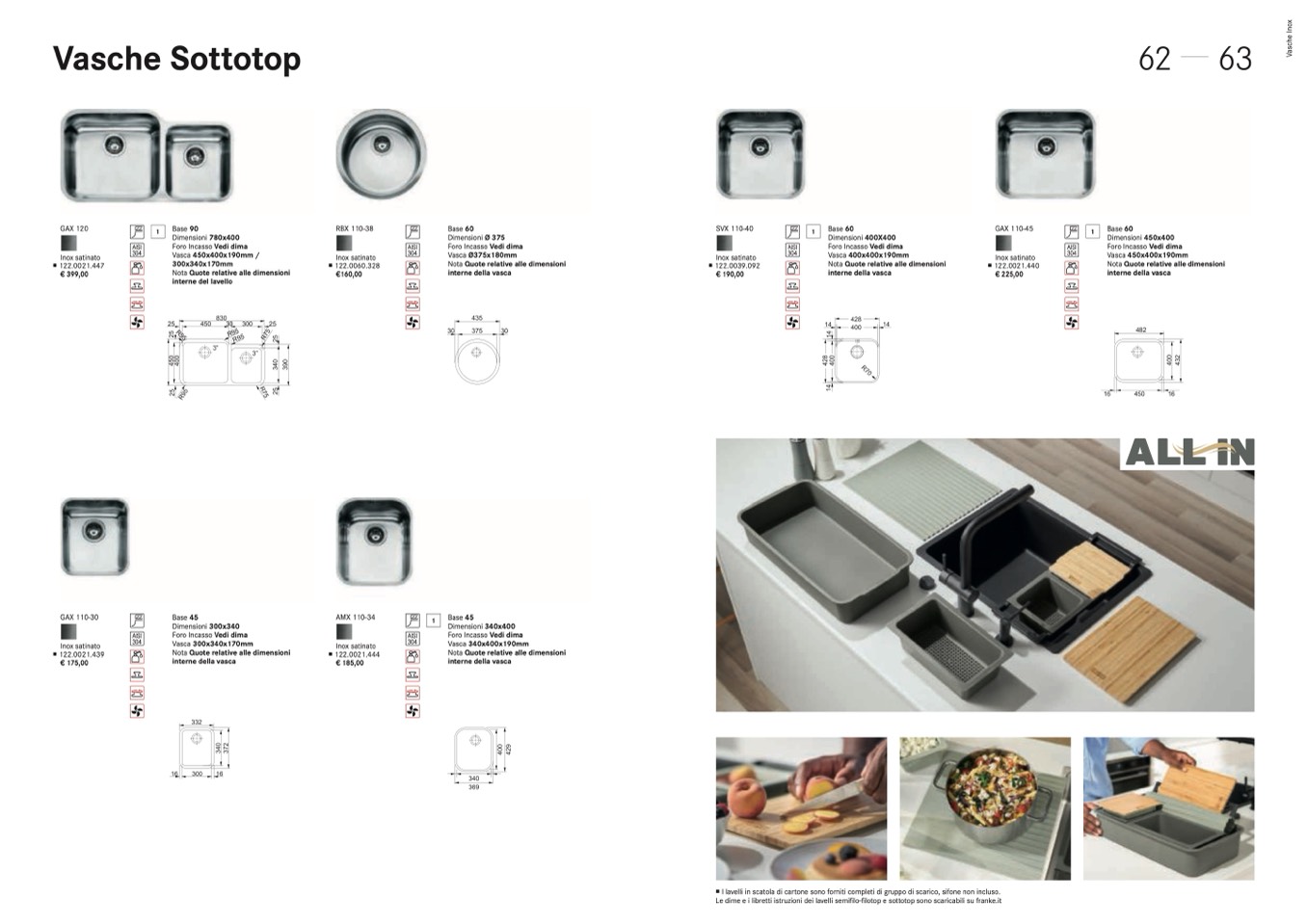 Le dime e i libretti istruzioni dei lavelli semifilo-filotop e sottotop sono scaricabili su franke.it