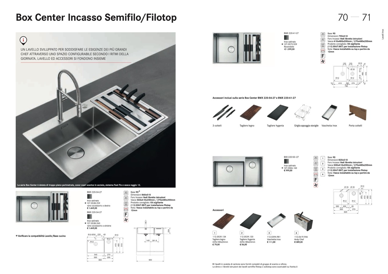 Le dime e i libretti istruzioni dei lavelli semifilo-filotop e sottotop sono scaricabili su franke.it