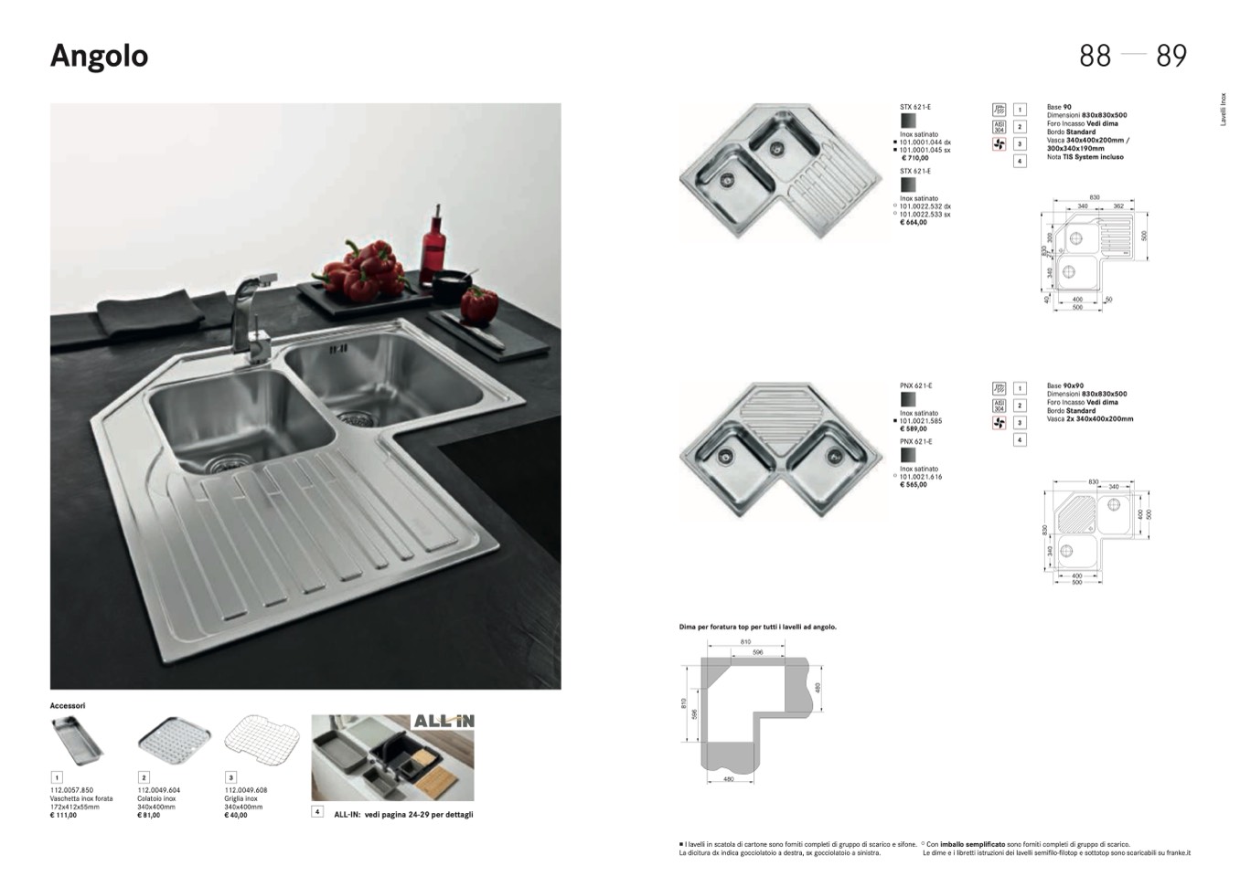 Le dime e i libretti istruzioni dei lavelli semifilo-filotop e sottotop sono scaricabili su franke.it
