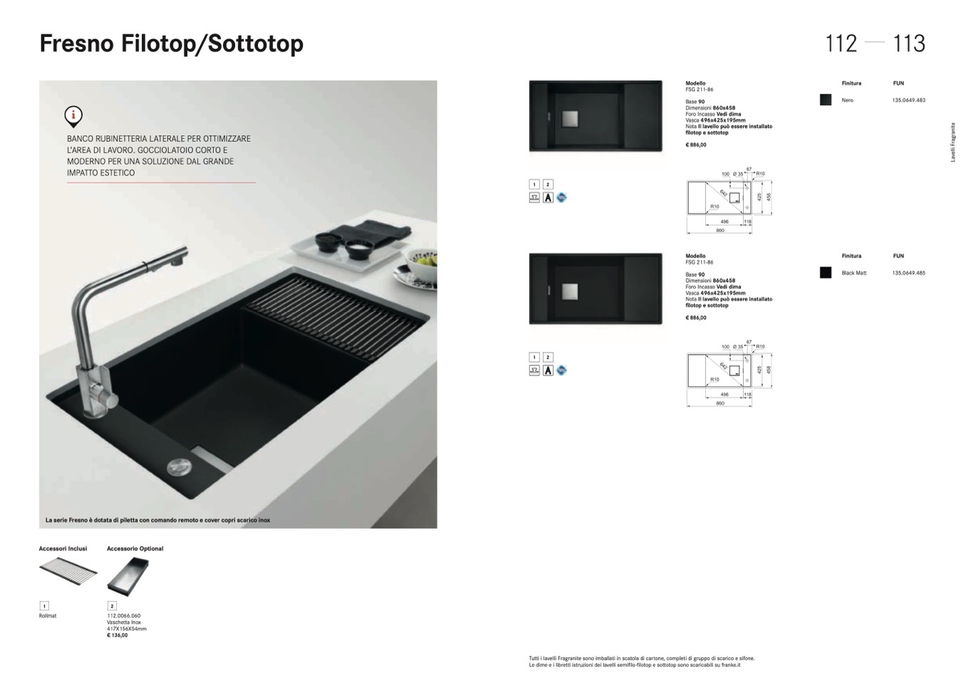 Le dime e i libretti istruzioni dei lavelli semifilo-filotop e sottotop sono scaricabili su franke.it