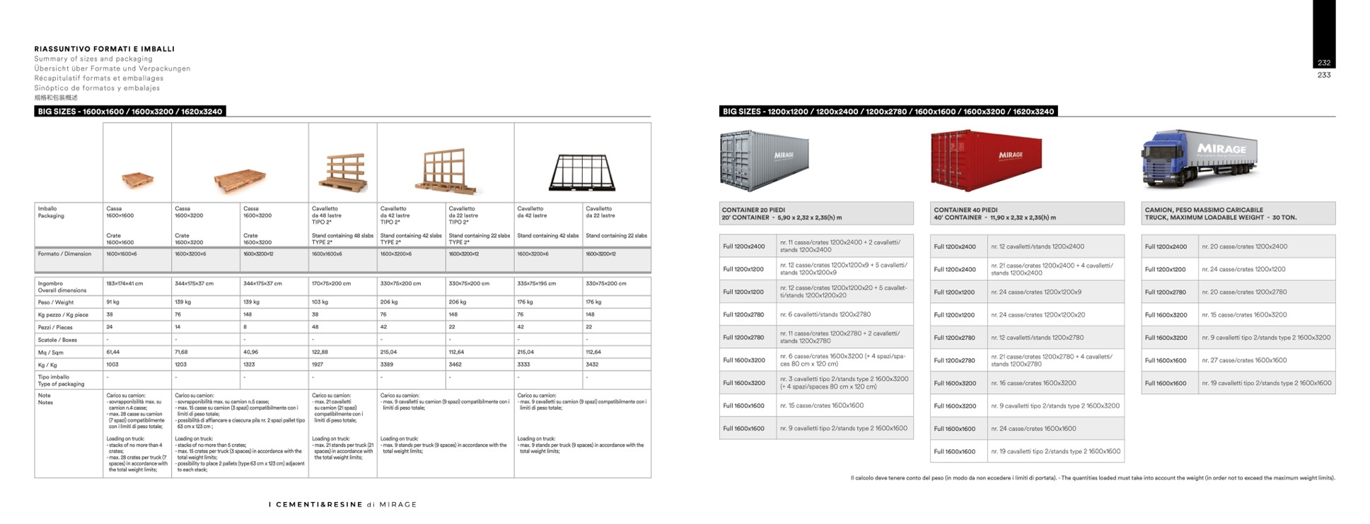 Il calcolo deve tenere conto del peso (in modo da non eccedere i limiti di portata). - The quantities loaded must take into account the weight (in order not to exceed the maximum weight limits).
