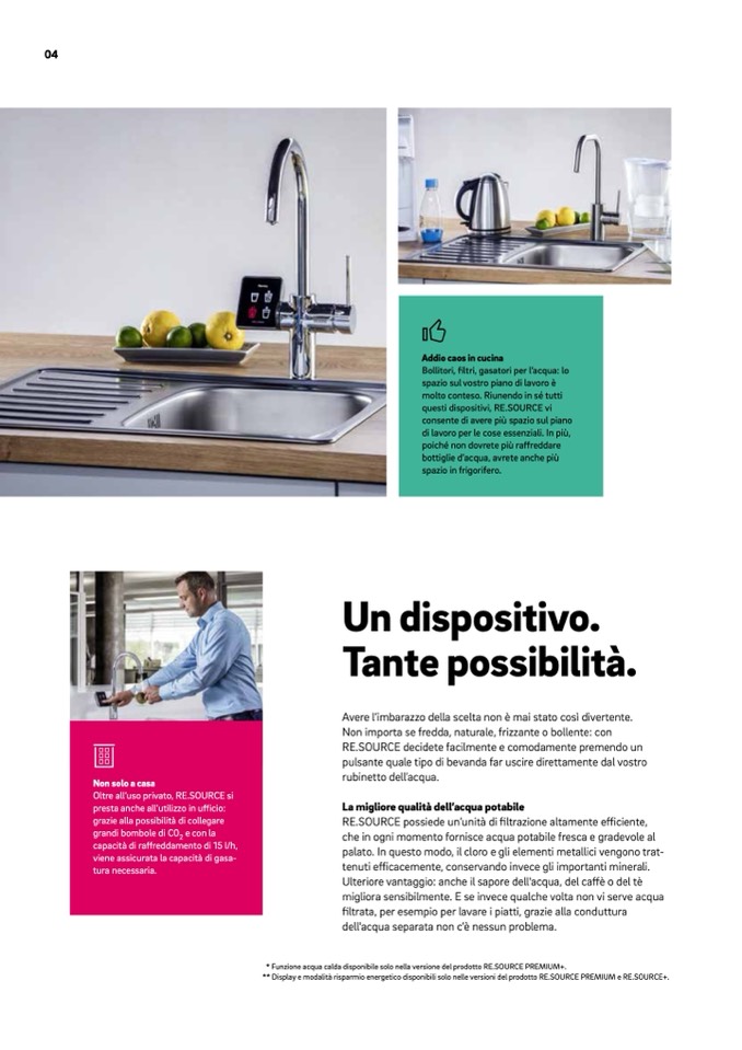 * Funzione acqua calda disponibile solo nella versione del prodotto RE.SOURCE PREMIUM+.