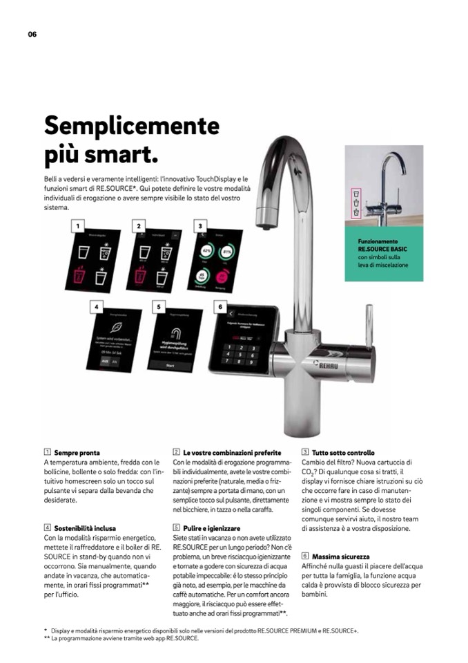 * Display e modalità risparmio energetico disponibili solo nelle versioni del prodotto RE.SOURCE PREMIUM e RE.SOURCE+.