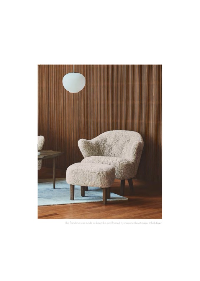 The first chair was made in sheepskin and formed by master cabinet maker Jakob Kjær.