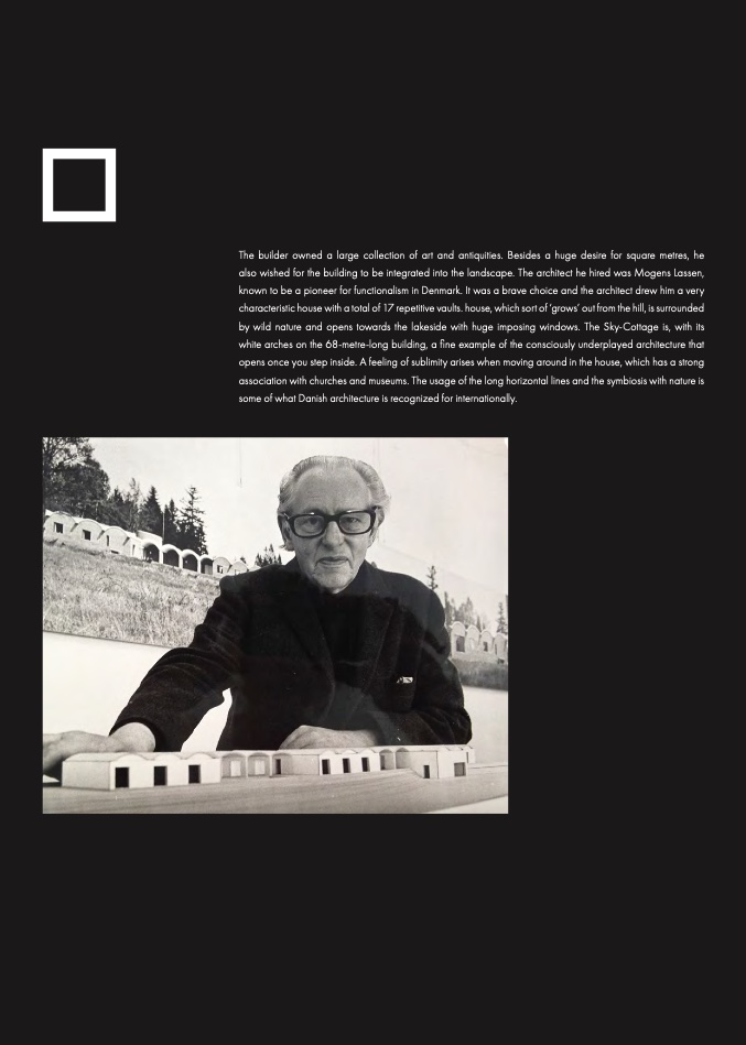 also wished for the building to be integrated into the landscape. The architect he hired was Mogens Lassen,