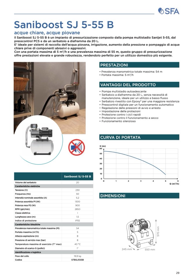 è un impianto di pressurizzazione composto dalla pompa multistadio Sanijet 5-55, dal