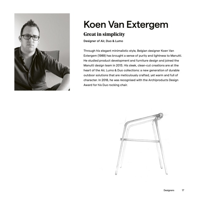Manutti design team in 2013. His sleek, clean-cut creations are at the