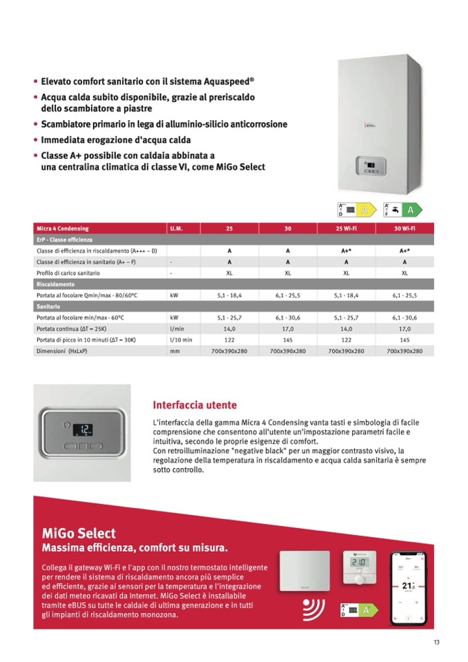 * Classe energetica di sistema in combinazione con centralina climatica Wi-Fi MiG