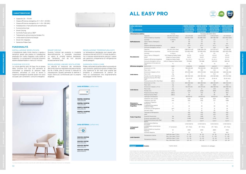 I valori di EER e COP, utilizzabili esclusivamente per le finalità rivolte alla fruizione di detrazioni fiscali, sono riferite alle condizioni di cui alla PR EN 14511. I consumi energetici stagionali indicati, si riferiscono a cicli armonizzati
