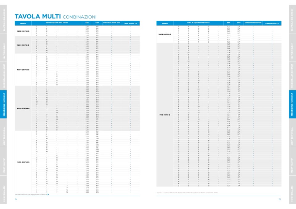 I valori di E.E.R. e C.O.P. della linea multi sono stati determinati sulla base del Modello di riferimento Xtreme.