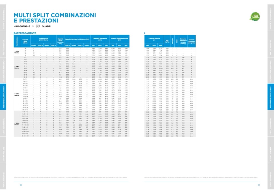 Le tavole fanno riferimento alle prestazioni del prodotto rilevate alle condizioni di installazione e prova di cui alla PR EN 14511 (2014) ed in riferimento all’abbinamento delle Unità esterne con Unità interne Xtreme.