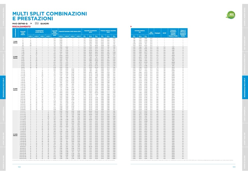 Le tavole fanno riferimento alle prestazioni del prodotto rilevate alle condizioni di installazione e prova di cui alla PR EN 14511 (2014) ed in riferimento all’abbinamento delle Unità esterne con Unità interne Xtreme.