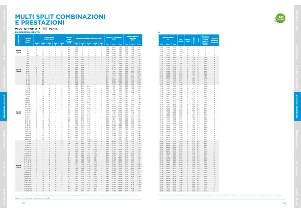 Le tavole fanno riferimento alle prestazioni del prodotto rilevate alle condizioni di installazione e prova di cui alla PR EN 14511 (2014) ed in riferimento all’abbinamento delle Unità esterne con Unità interne Xtreme.