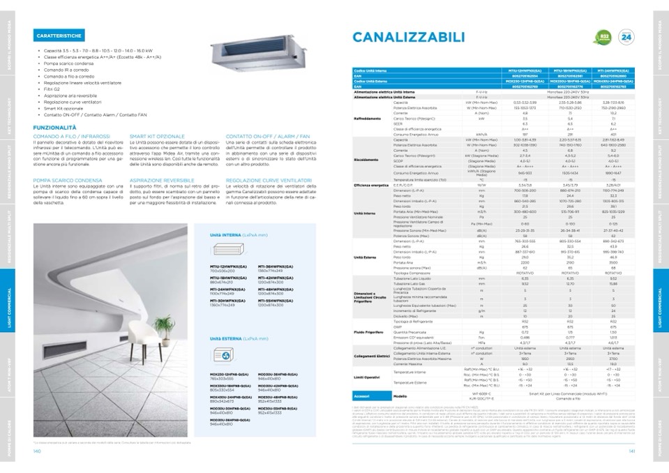 I valori di EER e COP, utilizzabili esclusivamente per le finalità rivolte alla fruizione di detrazioni fiscali, sono riferite alle condizioni di cui alla PR EN 14511. I consumi energetici stagionali indicati, si riferiscono a cicli armonizzati