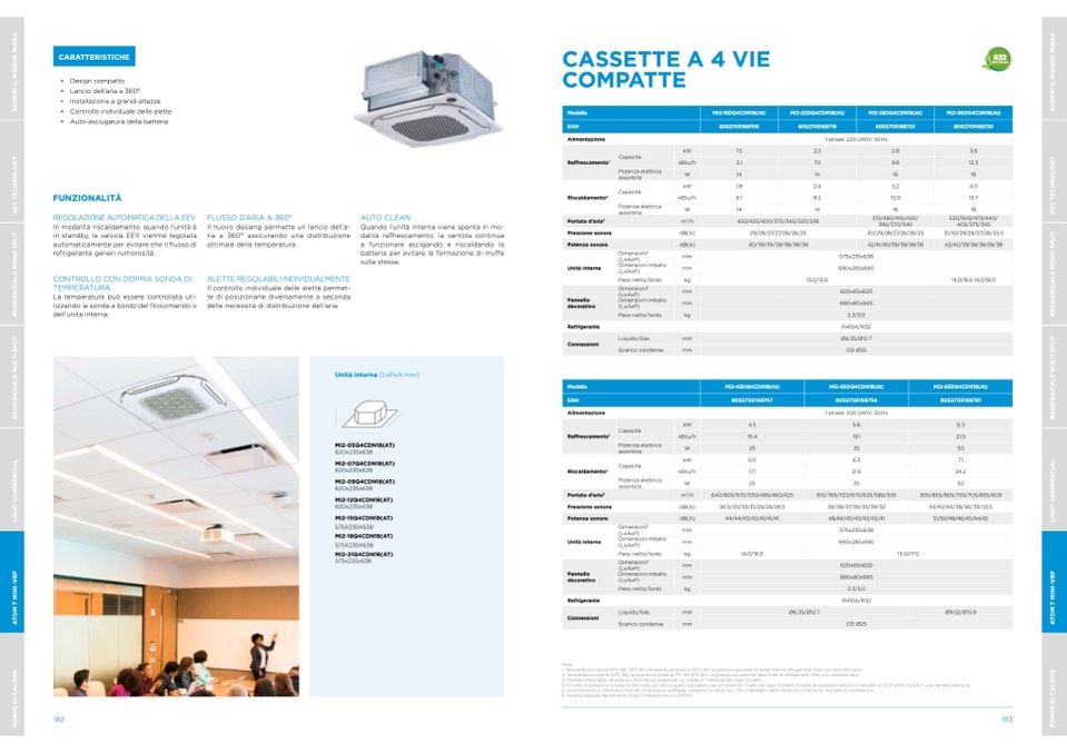 1. Temperatura interna 27°C BS, 19°C BU; temperatura esterna 35°C BS, lunghezza equivalente delle linee di refrigernate 7,5m con dislivello zero.