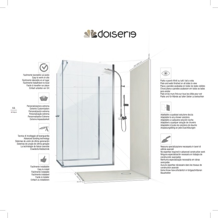 Piatto e pareti rifiniti su tutti i lati a vista