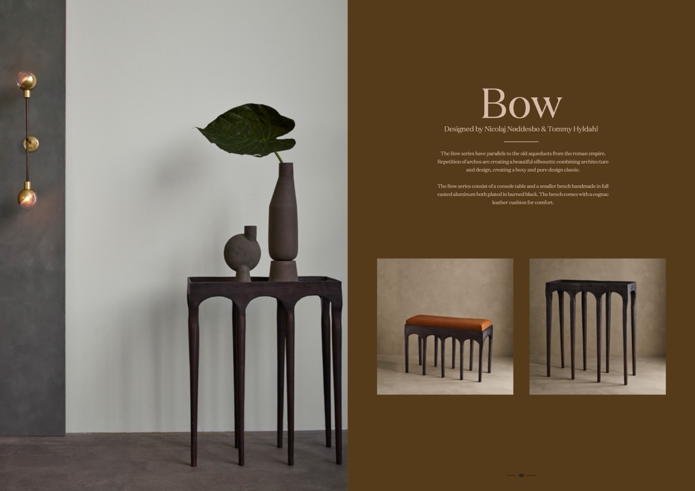 The Bow series consist of a console table and a smaller bench handmade in full