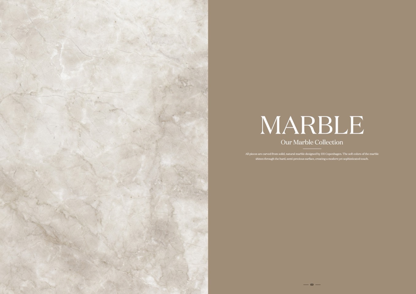 All pieces are carved from solid, natural marble designed by 101 Copenhagen. The soft colors of the marble