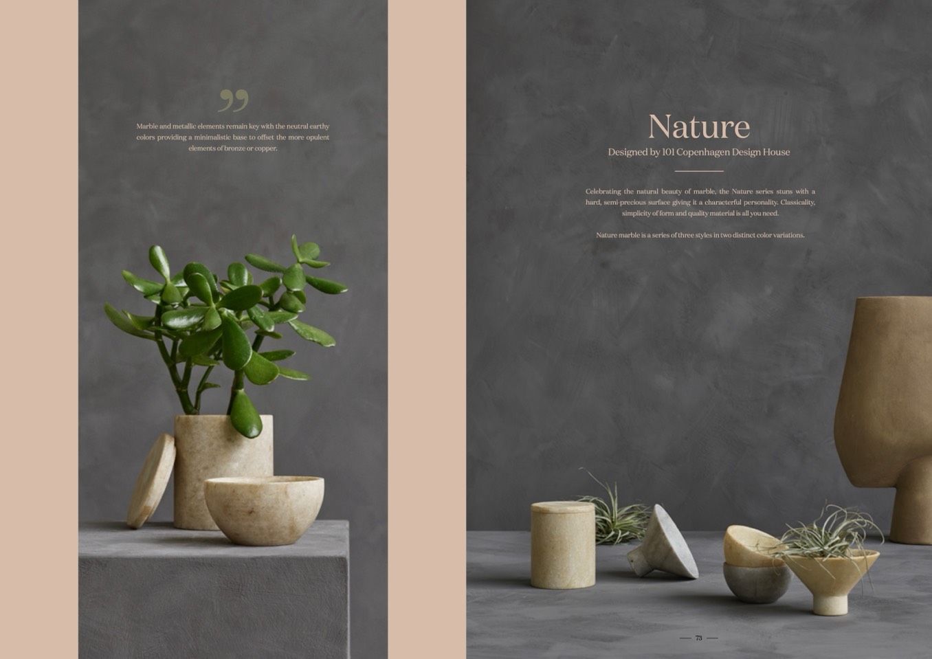 Marble and metallic elements remain key with the neutral earthy