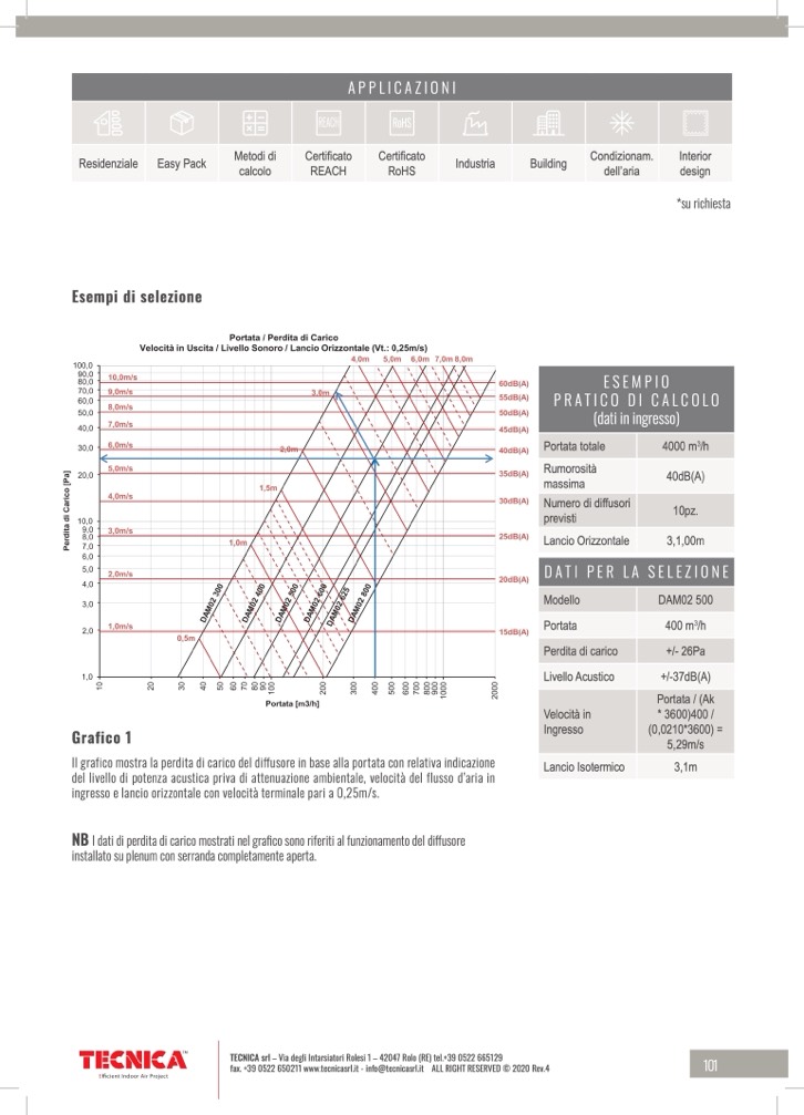 NB I dati di perdita di carico mostrati nel grafico sono riferiti al funzionamento del diffusore