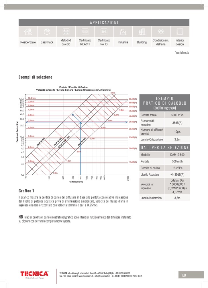 NB I dati di perdita di carico mostrati nel grafico sono riferiti al funzionamento del diffusore installato