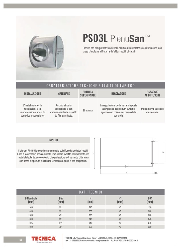Il plenum P03 è idoneo ad essere montato sui diffusori a deflettori mobili.
