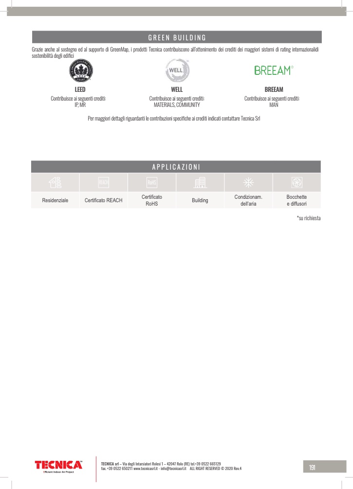 Grazie anche al sostegno ed al supporto di GreenMap, i prodotti Tecnica contribuiscono all’ottenimento dei crediti dei maggiori sistemi di rating internazionalidi