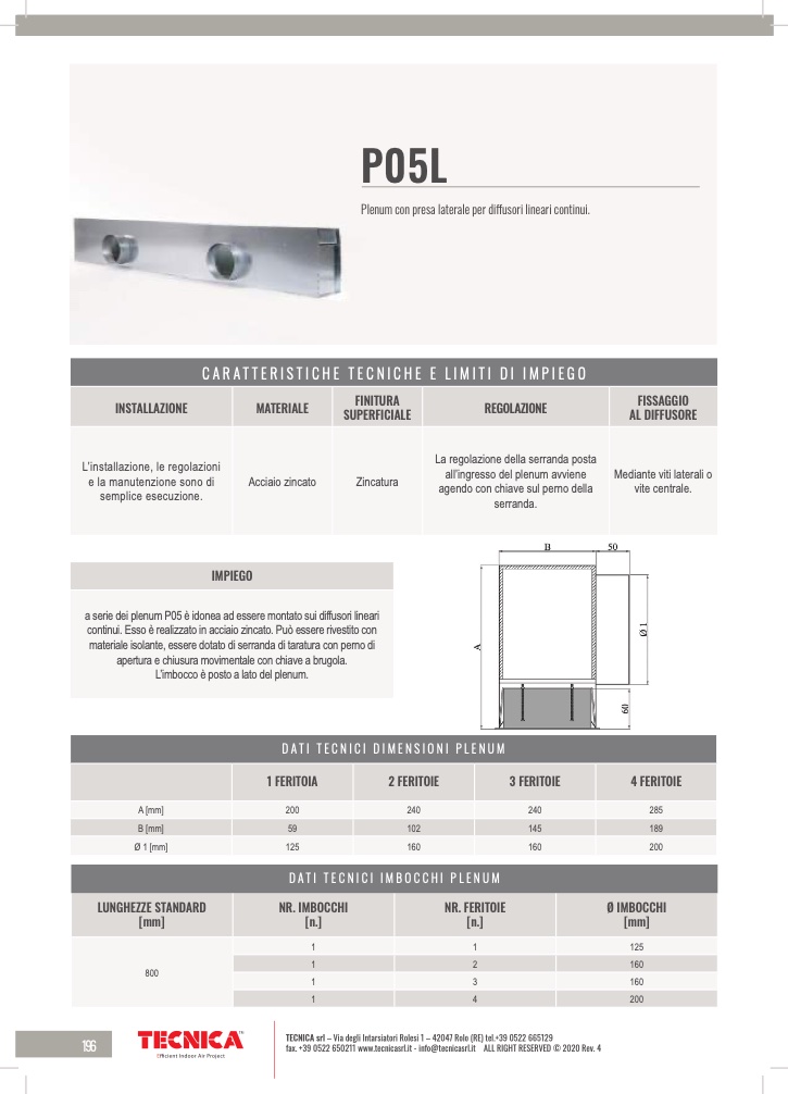 a serie dei plenum P05 è idonea ad essere montato sui diffusori lineari