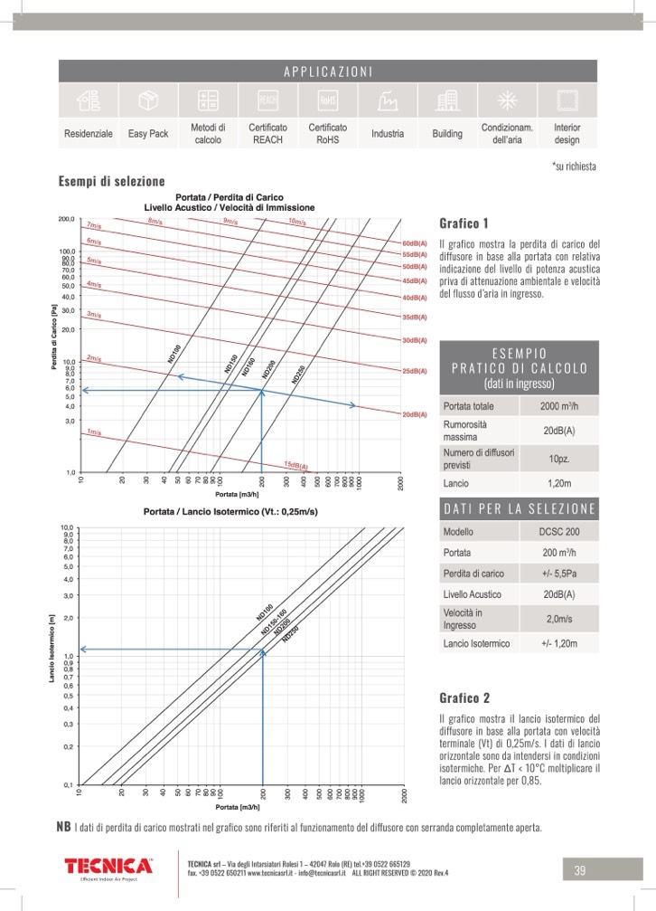 NB I dati di perdita di carico mostrati nel grafico sono riferiti al funzionamento del diffusore con serranda completamente aperta.